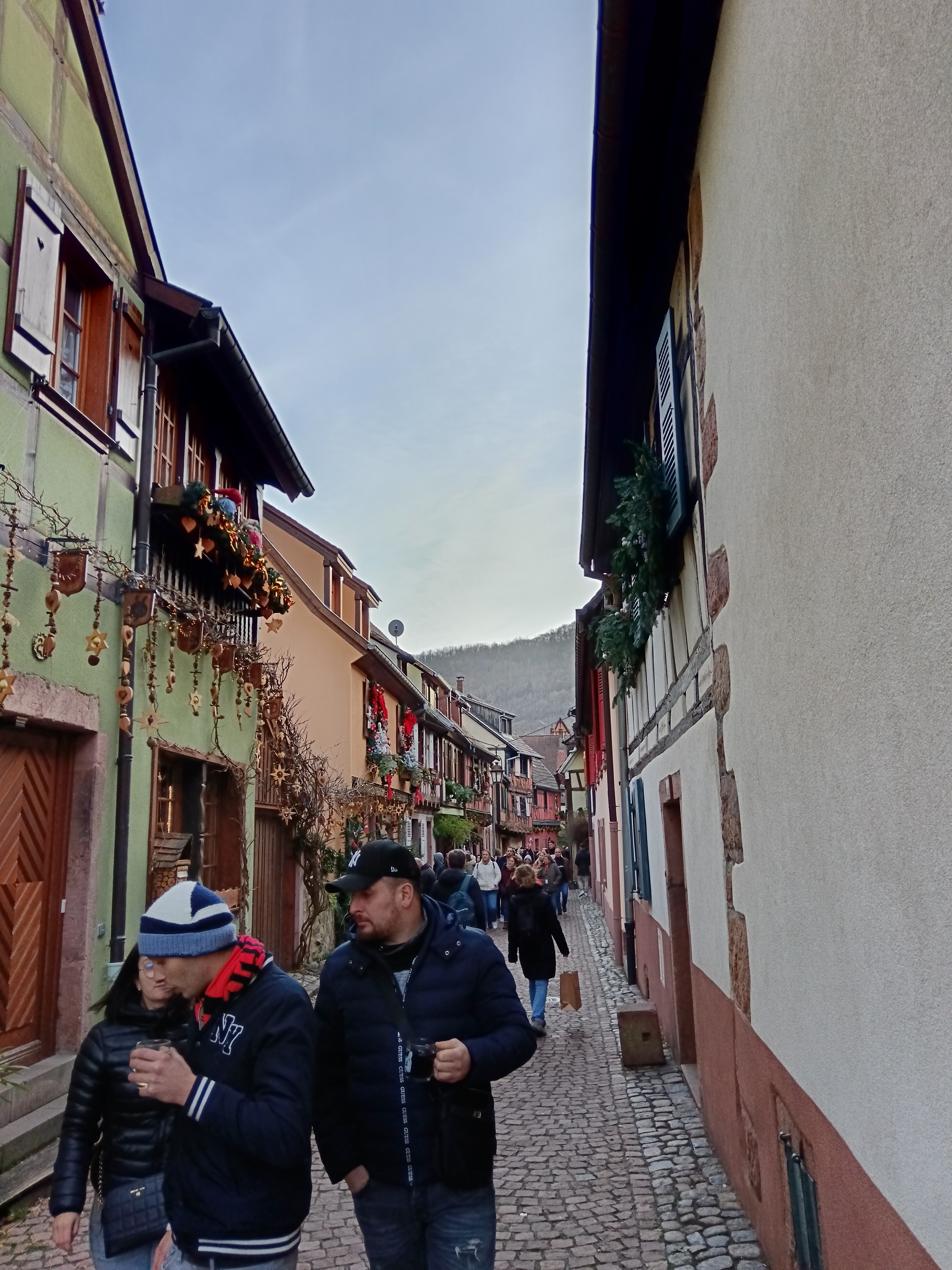 Qui a eu l’idée d’obliger à garder les verres pour les boissons chaudes, il y a assez de déchets et qui a envie de ramener un verre marqué kaysersberg … Le marché est très joli avec de beaux artisans régionaux. Ça compense les verres chinois 🫣