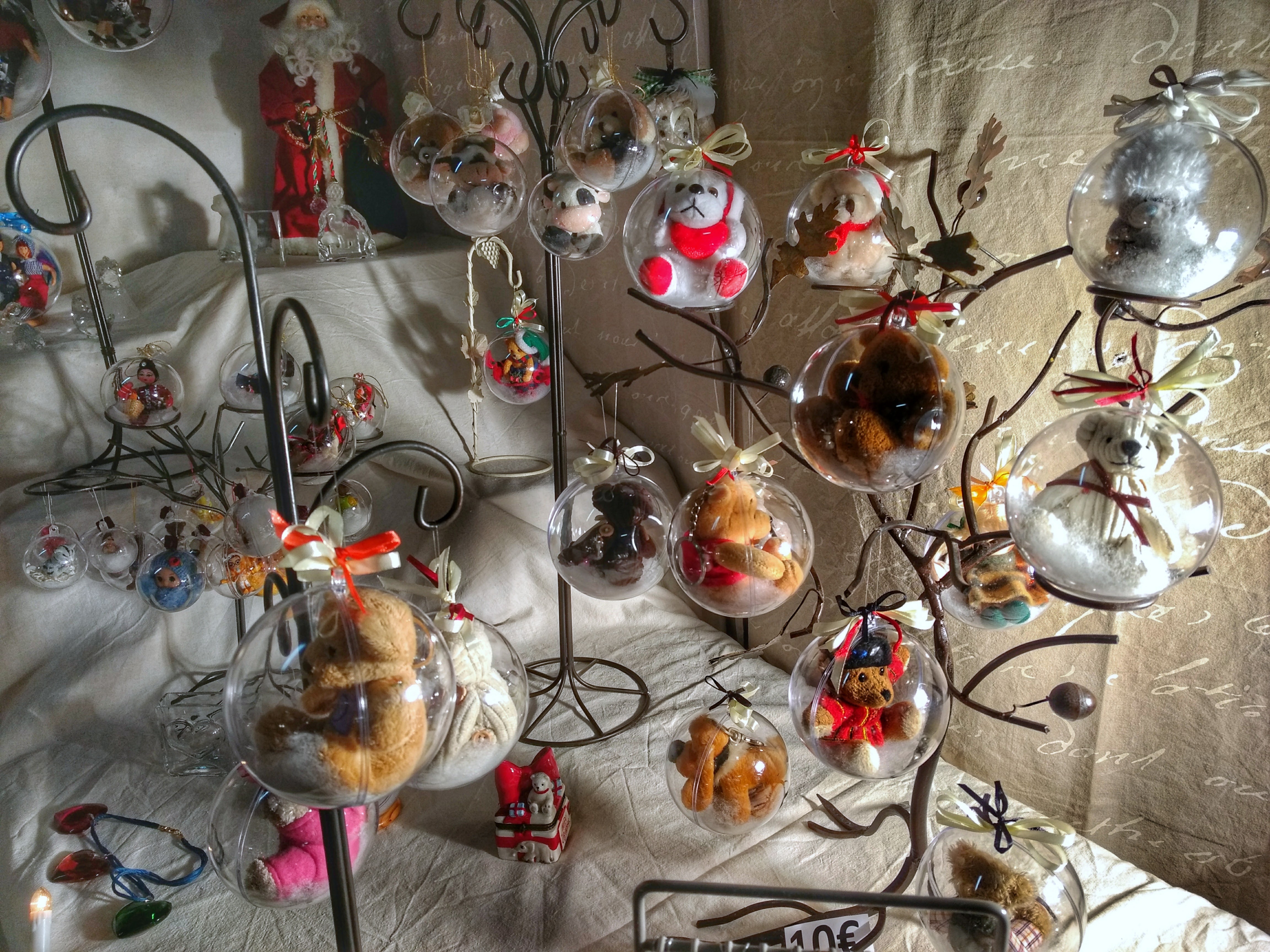 Petit marché de Noël typique. Petits artisans, automates, decorations, animaux... et beaucoup de monde.